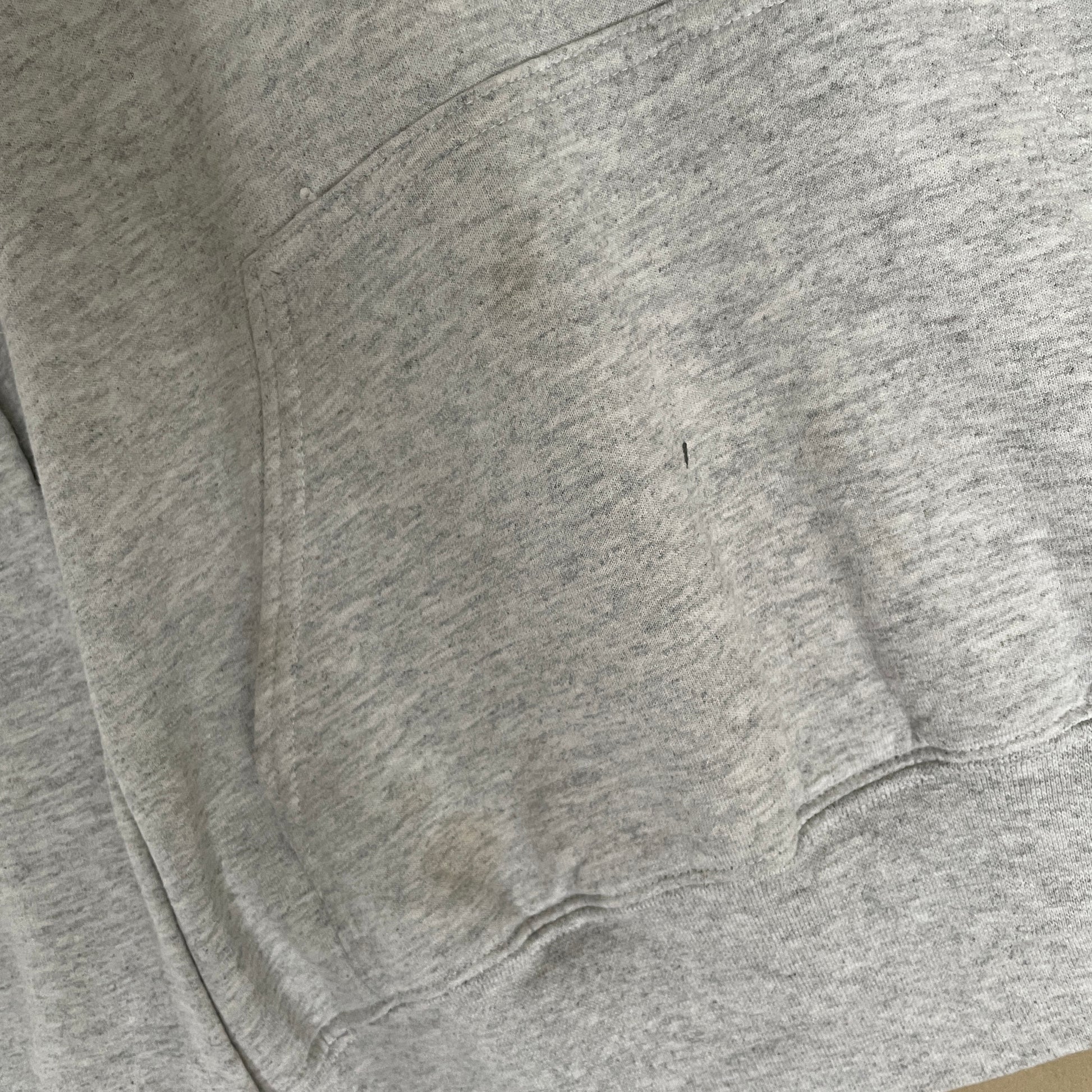 Klassisk Grå Hoodie Med Lille Frontprint Og Stort Rygttryk Med Soccer Motiv. Blød Sweatkvalitet Med Kængurulomme Og Snøre I Hætten.