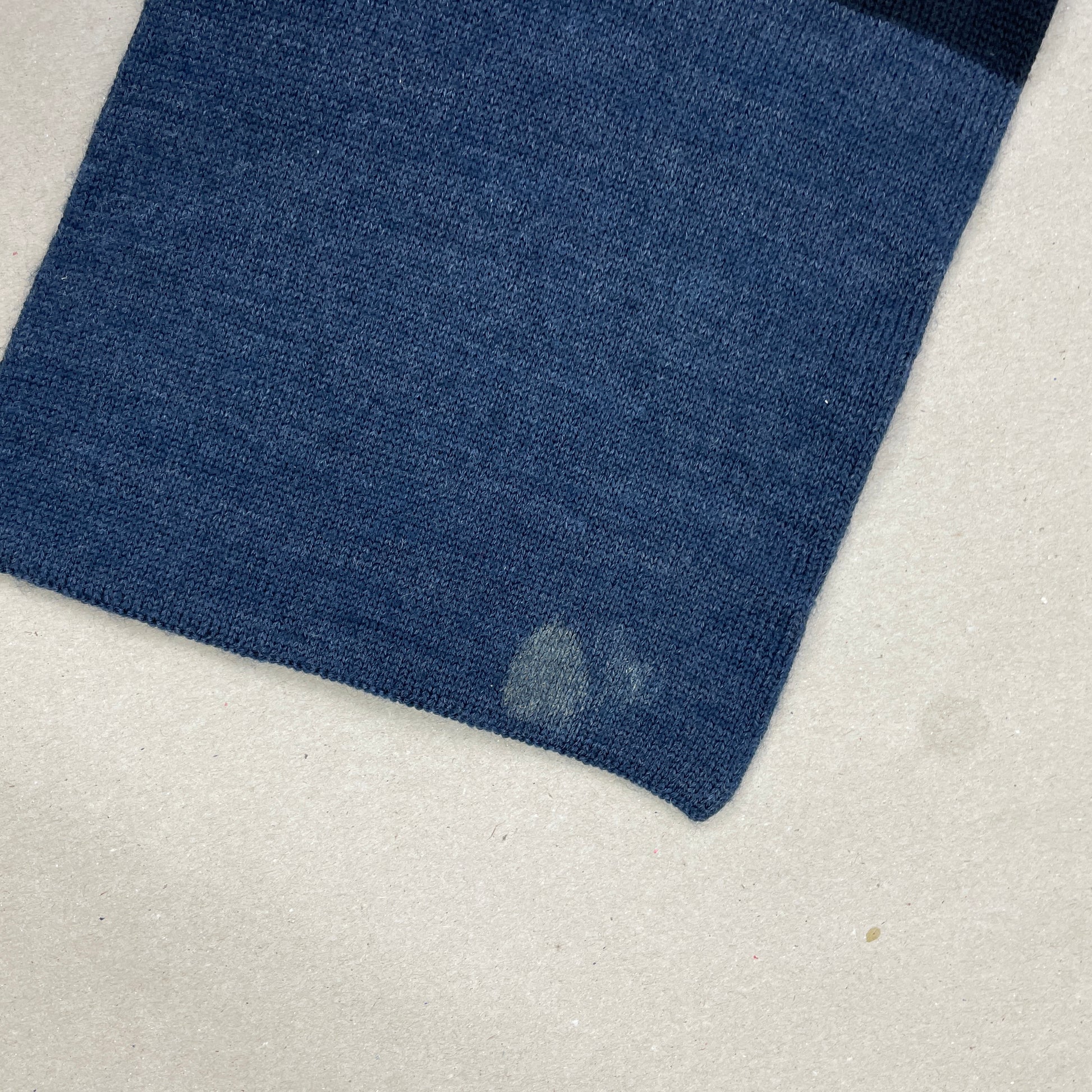 Strikket Halstørklæde Fra Wood Wood I Et Ternet Design Med Skiftevis Marineblå Og Mørkeblå Felter. Broderet “W.W.” Logo På Den Ene Ende Og “Nørrebro Europe – Wood Wood” Print På Den Anden. Urban Look Med Klassiske Streetwear Referencer Fra Københavnske Wood Wood.