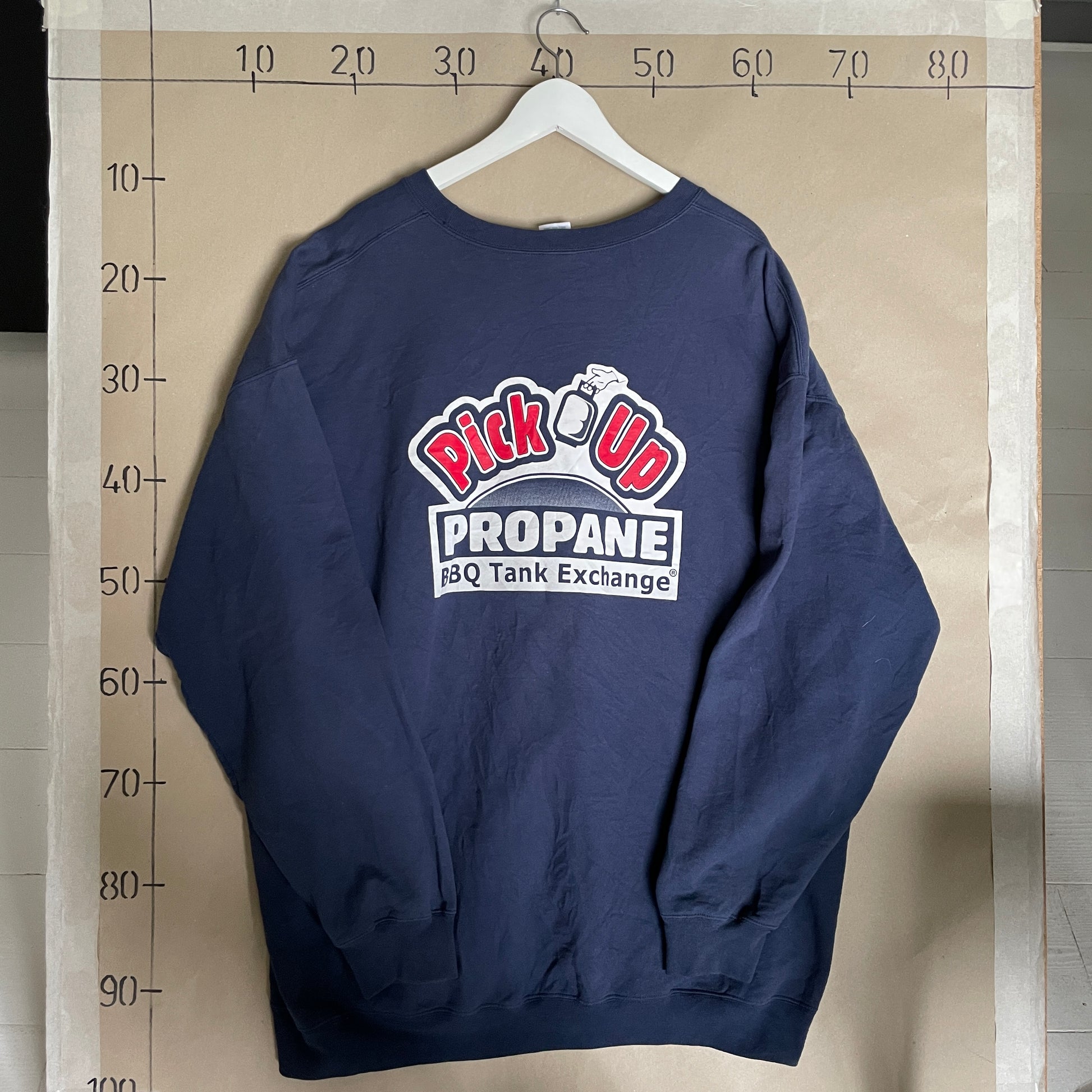 Vintage Sweatshirt, Mørkeblå Trøje, Pick Up Propane, Arbejdslook, Grafisk Print, Retro Statement, BBQ Tank Exchange, Streetwear Med Humor, Oversized Fit, Unisex Sweatshirt, Dobbeltsidet Print, 4XL, Oldschool Stil, Casual Chill, Logo Design, Sjov Grafik, Statement Piece, Rare Vintage, Sweatshirt Med Tryk, Cool Print, Secondhand Skat