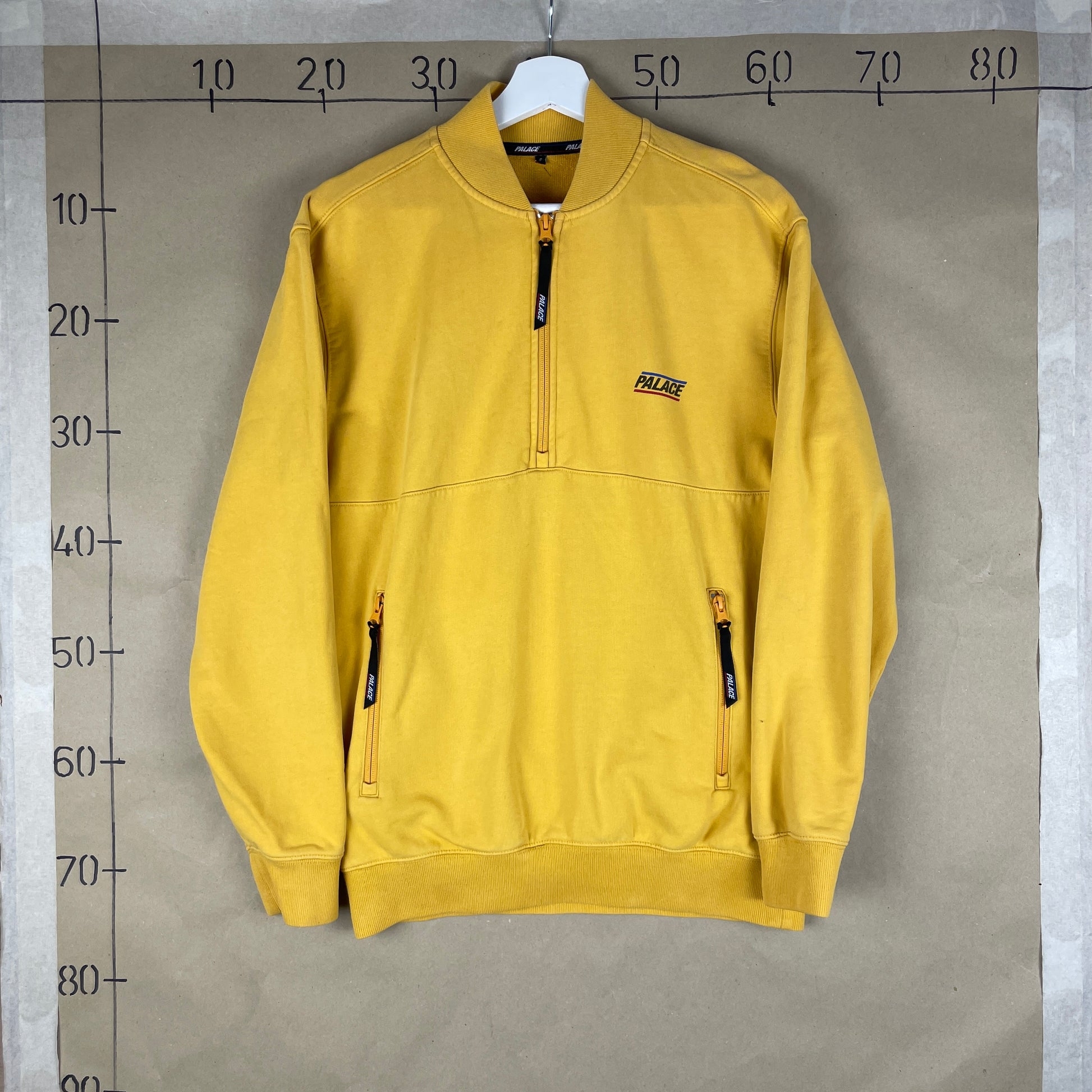 Sweatshirt, Palace, Half Zip, Gul Sweatshirt, Streetwear, Skatewear, Urban Stil, Logo Trøje, Vintage Style, Casual Look, Street Mode, 90’er Stil, Komfortabel Sweatshirt, Hiphop Stil, Crewneck, Unisex, Palace London, Sporty Fashion, Y2K Stil, Cozy Outfit, Trendy Trøje