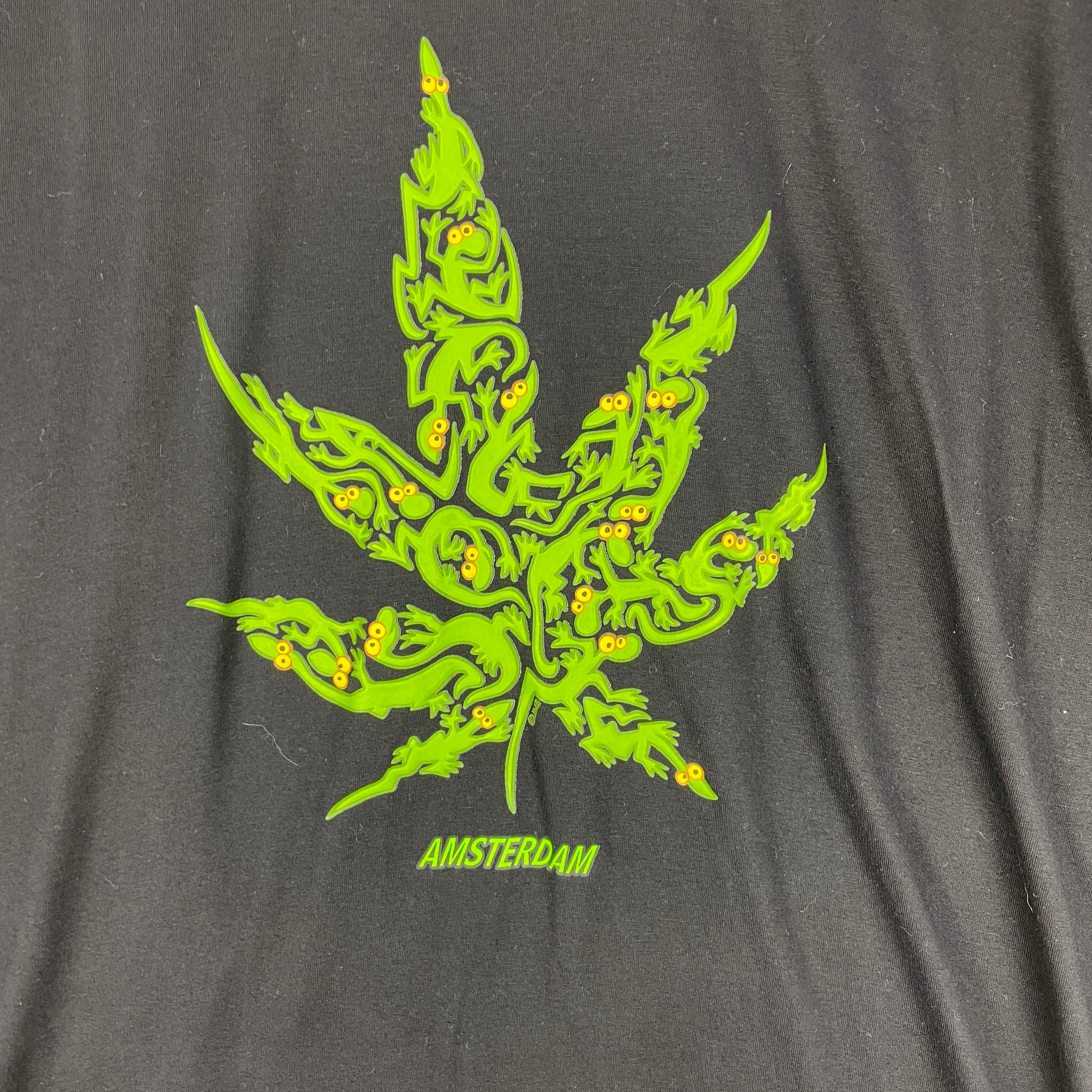 #AmsterdamTee #PsykedeliskLook #StreetwearStyle #WeedLeafPrint #FestivalFit #UrbanGraphicTee #AmsterdamVibes #2000sStreetwear