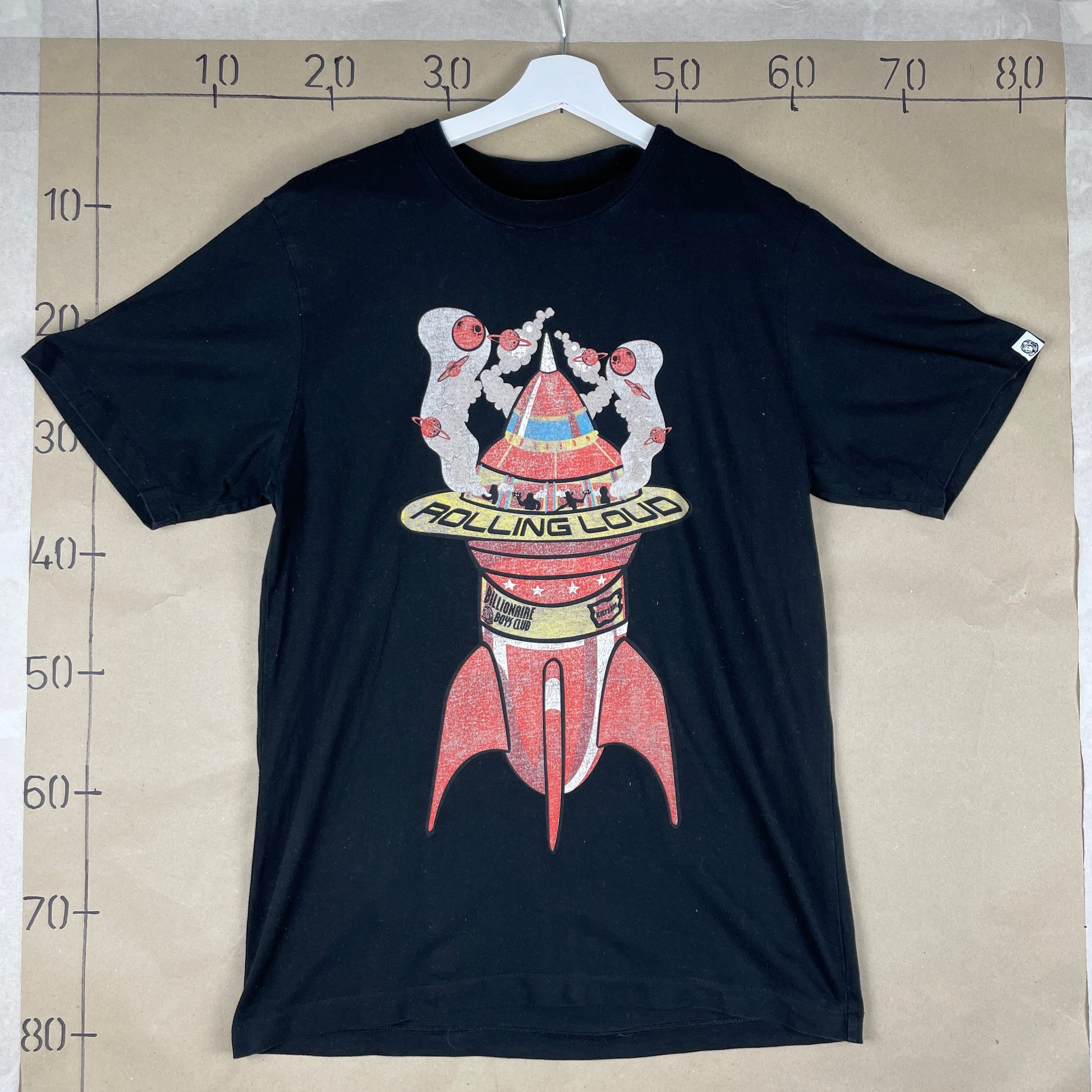 Sort T-shirt Fra Billionaire Boys Club I Samarbejde Med Rolling Loud Festivalen. Grafik På Brystet Med Raketmotiv Og Print På Ryggen. En Sjælden Collab-Tee Med Et Fedt Streetwear Udtryk.
